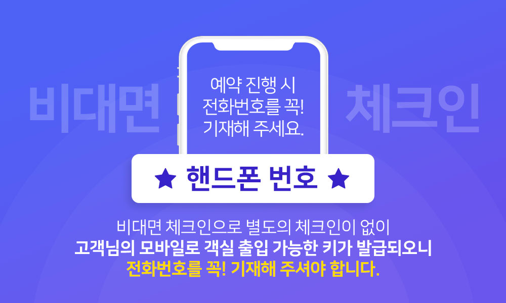금연숙소 도서관 레스토랑 디파짓제도 24시간 경비서비스 가습기대여